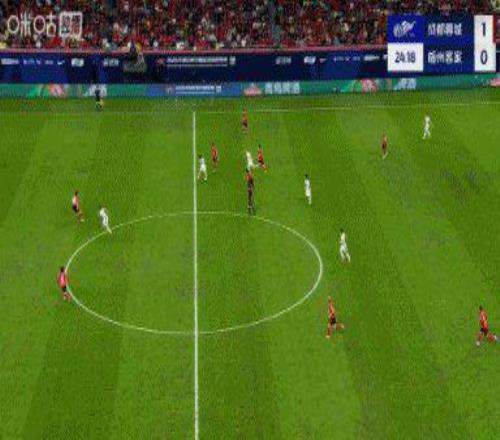 第18分钟,费利佩传中,罗慕洛直塞,杨明洋包抄破门,蓉城1比0领先梅州!