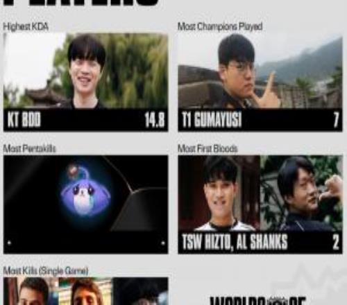 世界赛至今队伍数据:最短取胜时长HLE最多击杀、英雄数T1