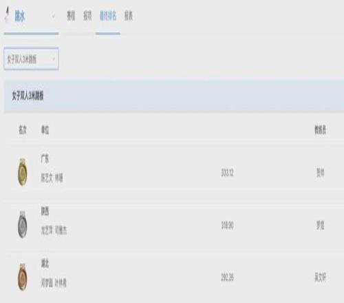 11月2日,在第十五届全运会跳水项目女子团体比赛中,全红婵搭档王伟莹出战女团双人10米台,3跳稳定发挥,以235.86的总成绩排名第一,帮助广东队女团夺金。