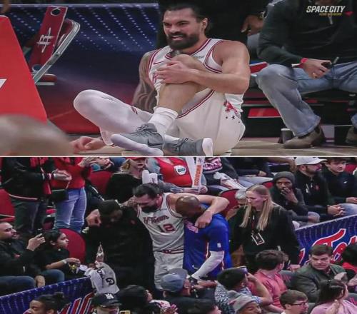 第四节还剩9分50秒,亚当斯起跳封盖锡安时,不慎崴脚受伤。他无法自主行走,直接被搀扶回更衣室。回放镜头没有看到脚部特写,无法判断崴脚的严重程度。火箭主帅乌度卡赛后说:“亚当斯没有骨折,但他的脚踝已经肿得厉害。”