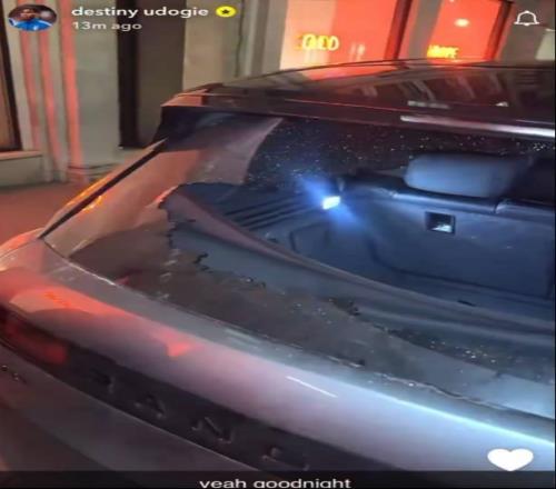 乌多基晒出了自己的汽车的照片,可以看到,他的路虎揽胜后玻璃被砸碎,后备箱里还散落着玻璃碎片,旁边还有一个木制衣架和一个水箱,他配文:“太好了,晚安”。